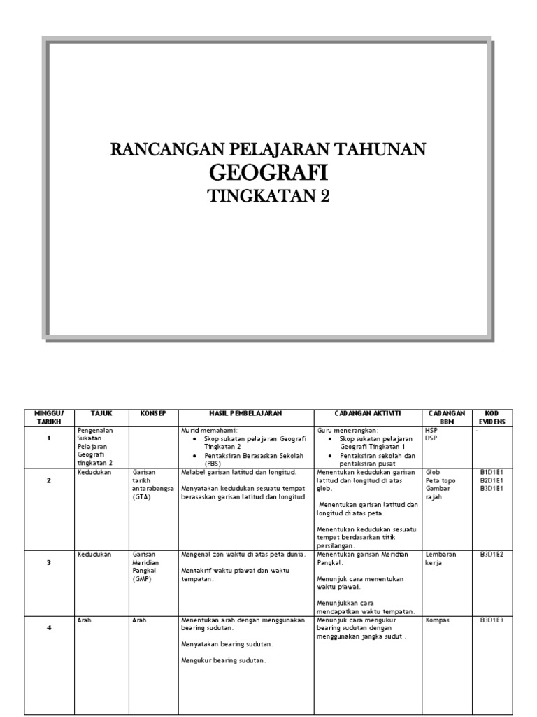 Rancangan Pengajaran Tahunan Geografi Tingkatan 1 Dan 2 Tahun 2018